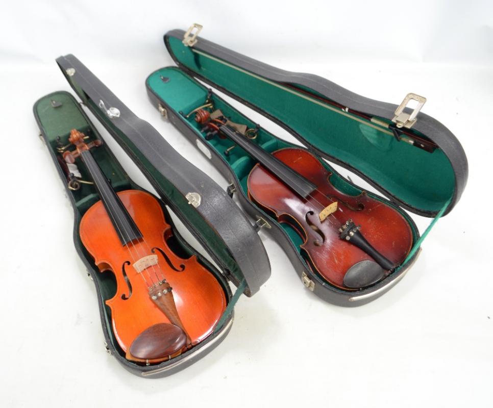 Lot 267 of 1991: A full sized Stentor violin, cased with bow and an unnamed full sized violin, cased with bow (2).