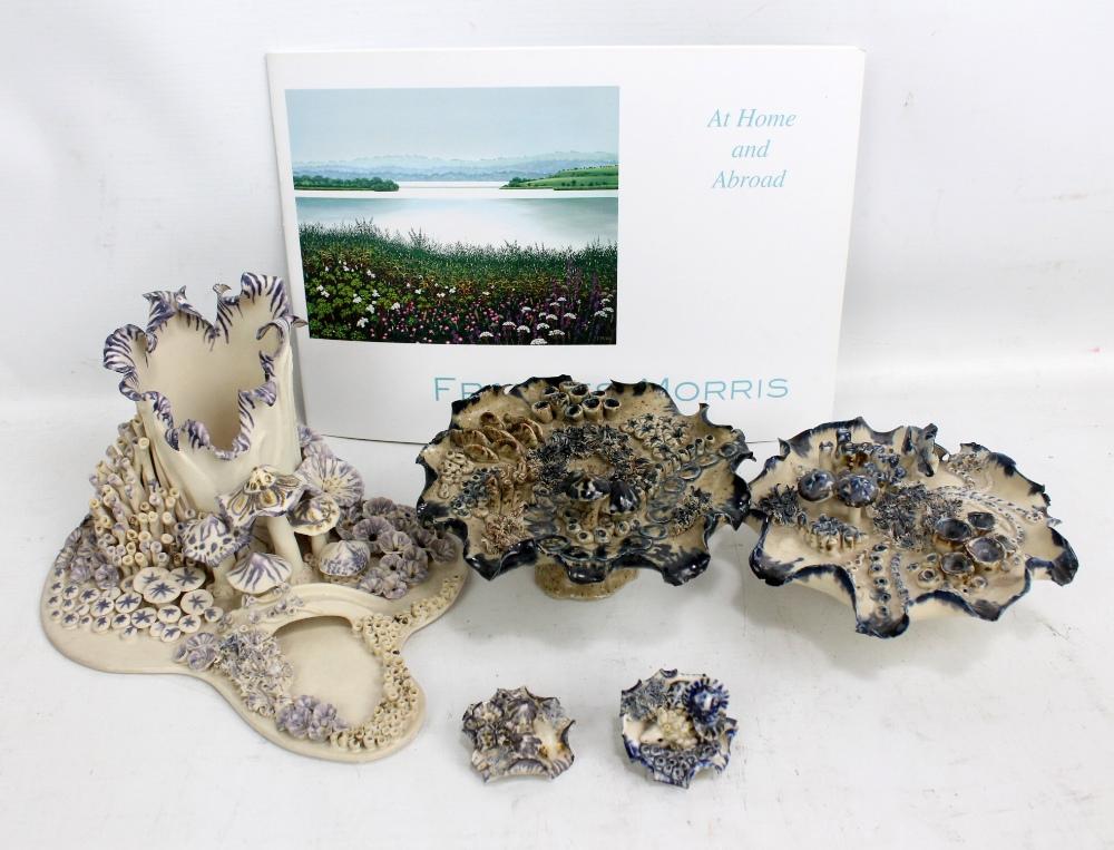 Lot 526 of 1991: FRANCES MORRIS; five porcelain models of mushrooms of varied size, the three larger pieces signed and dated '78 and '79 to bases, the largest approx 12.5 x 25cm, with booklet (5).