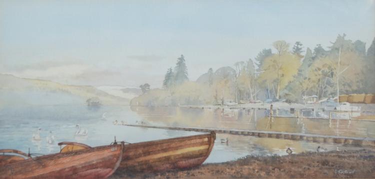 Lot 905 of 1991: DAVID R ELLIOTT; watercolour, lake scene with ducks and swans, signed lower right, 25.5 x 53cm, framed and glazed.