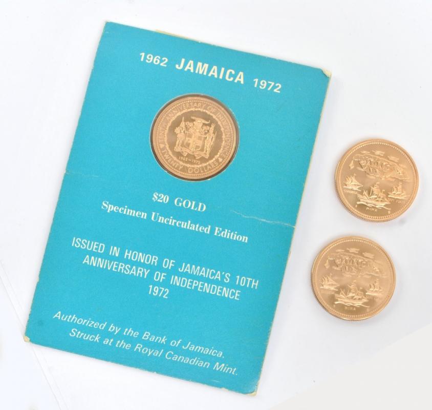 Lot 1265 of 1991: Three Jamaica $20 gold coins issued in honour of Jamaica's tenth anniversary of independence 1972 (3).