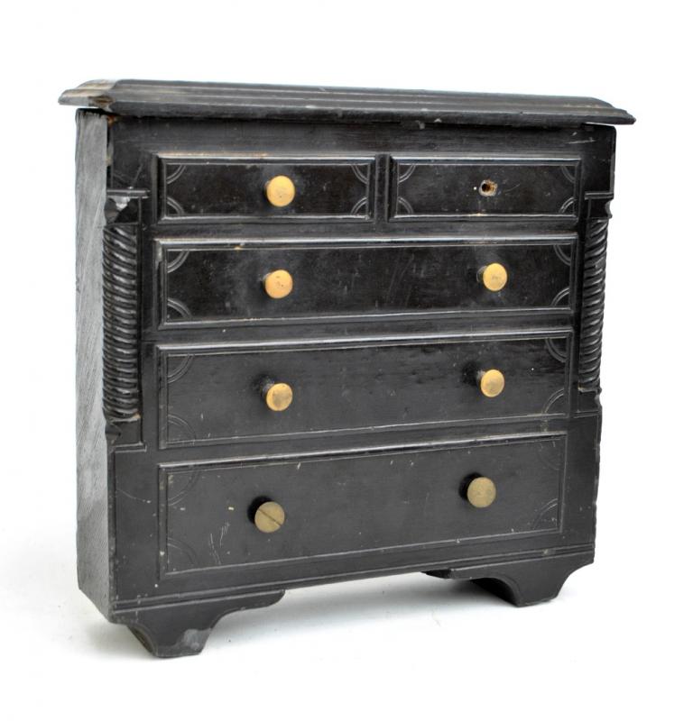 Lot 53 of 2312: A Victorian Welsh slate doorstop modelled as a chest of two over three drawers, width 25cm.