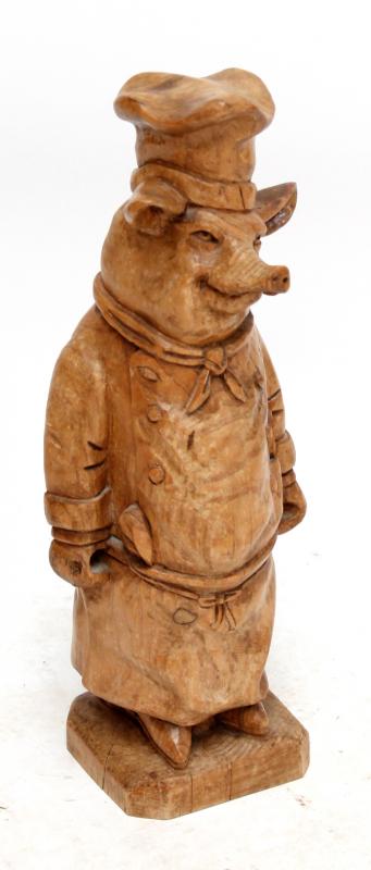 Lot 61 of 2312: A carved wooden novelty figure of a pig wearing chefs' whites, height 64cm.