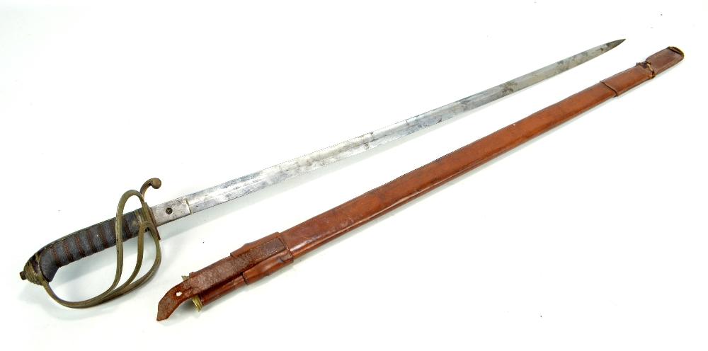 Lot 425 of 2312: A 19th century infantry officer's sword, stamped 'F Jagger', with further marks to the blade base, with shagreen and wirework grip, length of blade 81cm, in leather bound scabbard.