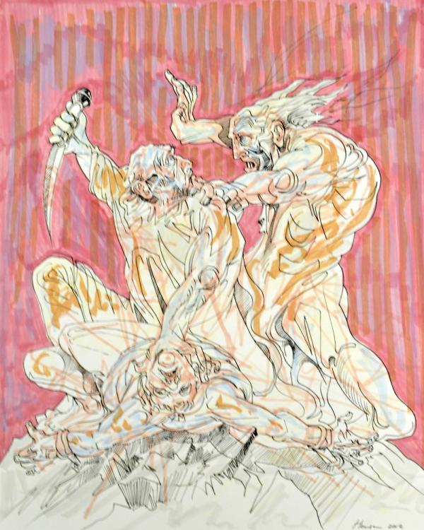 Lot 841 of 1757: PETER HOWSON OBE (Scottish, born 1958); ink and watercolour on paper, untitled, signed and dated 2012 recto, 50 x 40cm, unframed. (D)