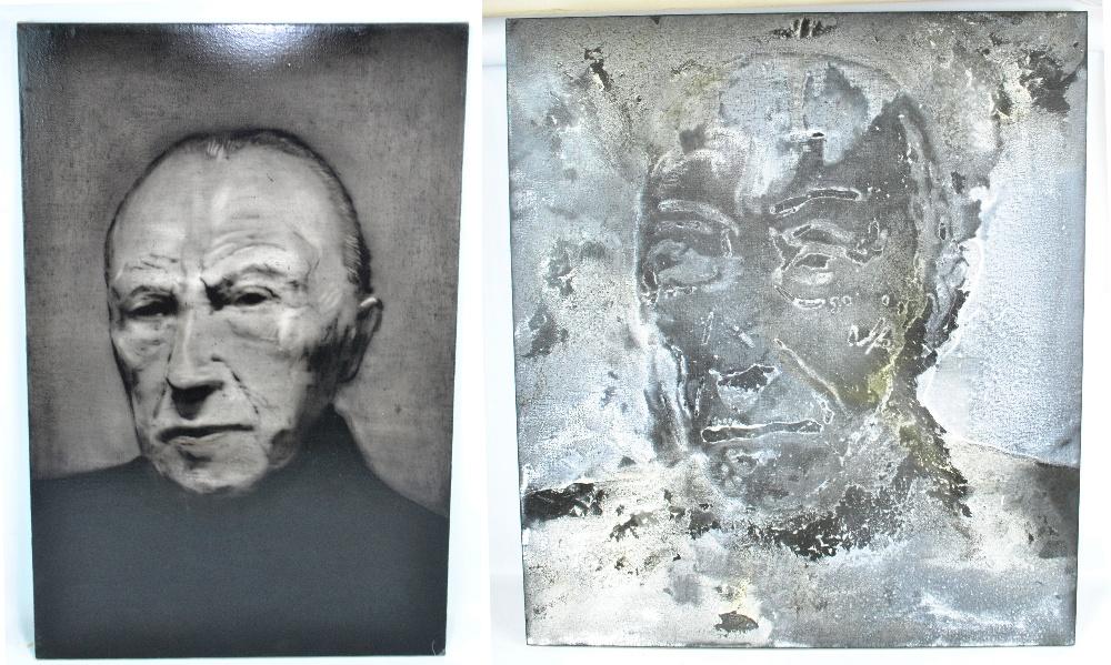 Lot 843 of 1757: DAMIAN DUFFY; a pair of oils, 'Konrad Adenauer', unsigned, 77 x 51cm, 92.5 x 82cm, unframed (2). (D)