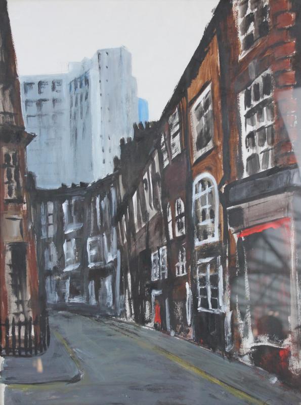 Lot 848 of 1757: CAMILLA PALMER; acrylic on cardboard, 'London Street, Shepherd's Market', 55 x 40cm, framed and glazed (D).