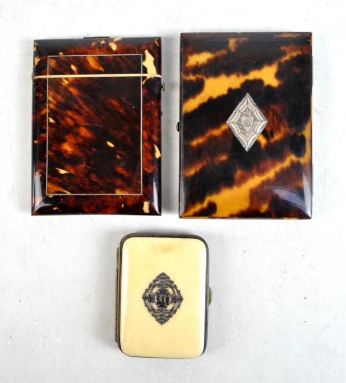 Lot 57 of 2052: A late Victorian tortoiseshell card case of rectangular form, a tortoiseshell case with concertina divided interior (af) and a small purse (3).