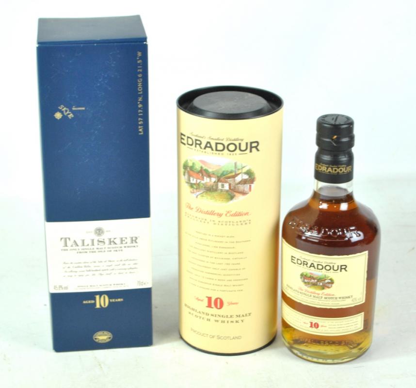 Lot 471 of 2052: Two bottles of single malt Scotch whisky comprising Talisker Aged 10 Years, 45.8% 70cl, and Edradour The Distillery Edition Aged 10 Years, 70cl 40%, both boxed (2).