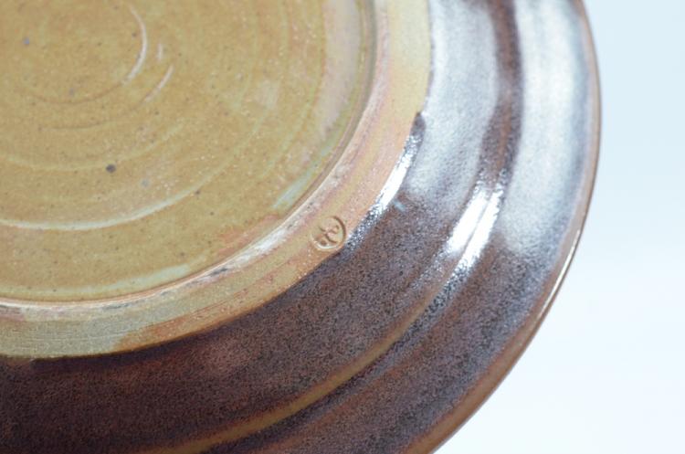 Lot 39 of 523: RAY FINCH (1914-2012) for Winchcombe Pottery; a stoneware plate with meander decoration on iron rich ground, impressed WP. mark, diameter 29.5cm, and a slightly smaller example (2). (D)