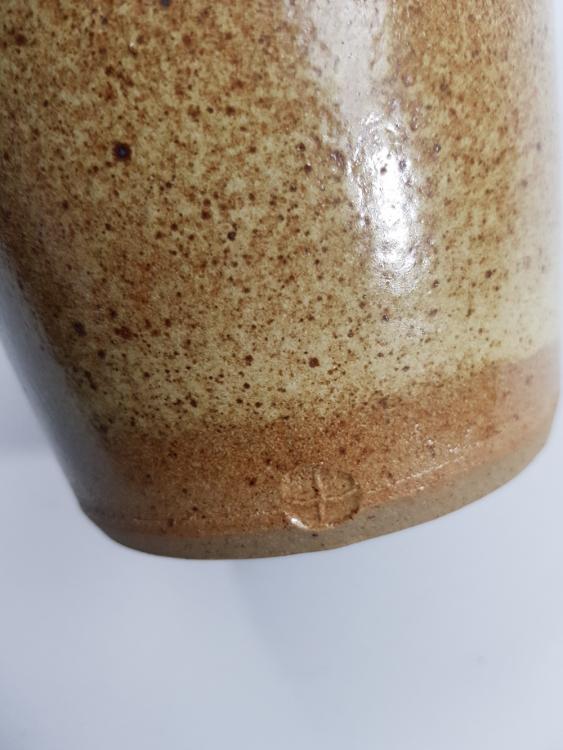 Lot 41 of 523: Winchcombe Pottery; a stoneware bottle covered in oatmeal glaze with incised decoration, impressed pottery mark, height 31cm.