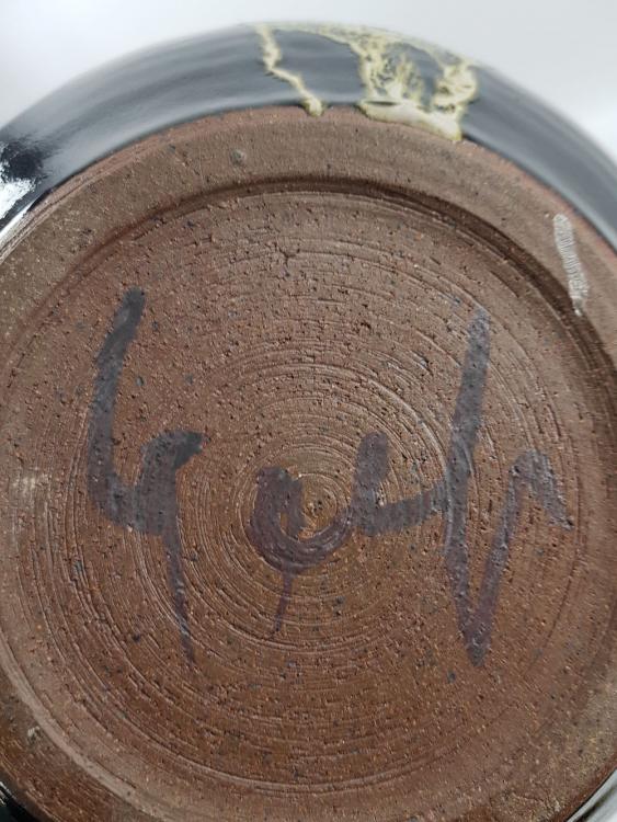 Lot 59 of 523: POH CHAP YEAP (1927-2007); a large globular stoneware vase covered in tenmoku glaze with khaki flecks and a nuka-like pour decoration, painted signature, height 21.5cm. (D)