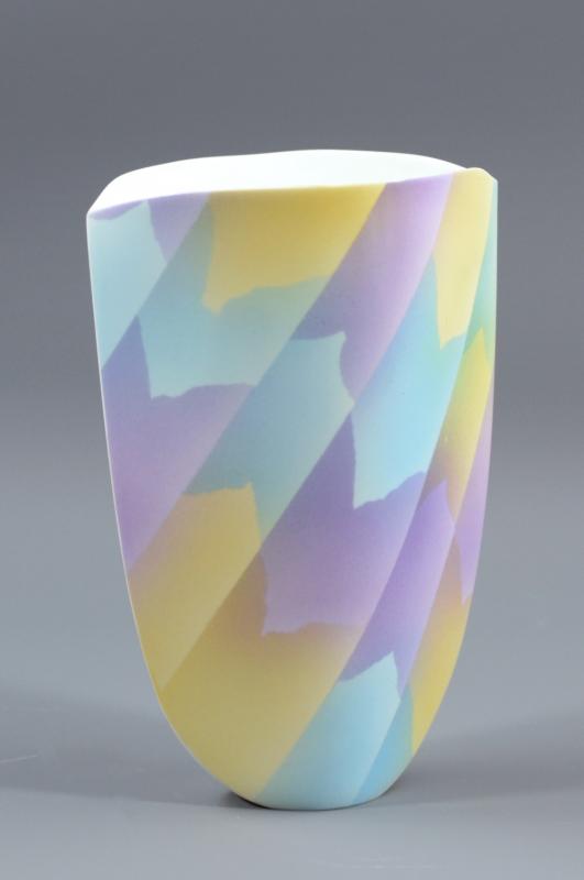 Lot 257 of 523: SASHA WARDELL (born 1956); a slipcast egg-shell bone china vessel covered in air-brushed polychrome decoration, painted mark, height 18cm. (D)
