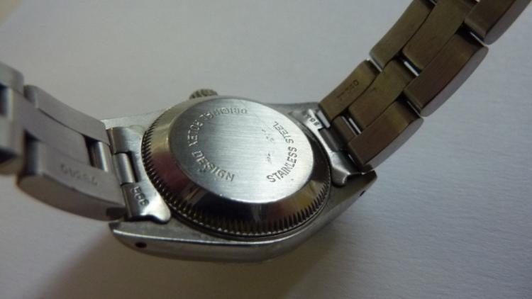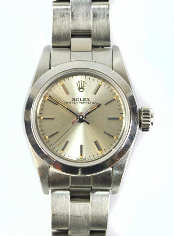 Lot 2052 of 2597: ROLEX; a stainless steel 'Oyster Perpetual' lady's wristwatch, the circular dial set with baton numerals, on integral President link bracelet, number 566, also numbered 78340 to the bracelet.