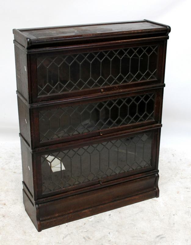 Lot 2339 of 2597: GLOBE-WERNICKE; an oak three sectioned leaded glazed bookcase, height 115 x 87cm.