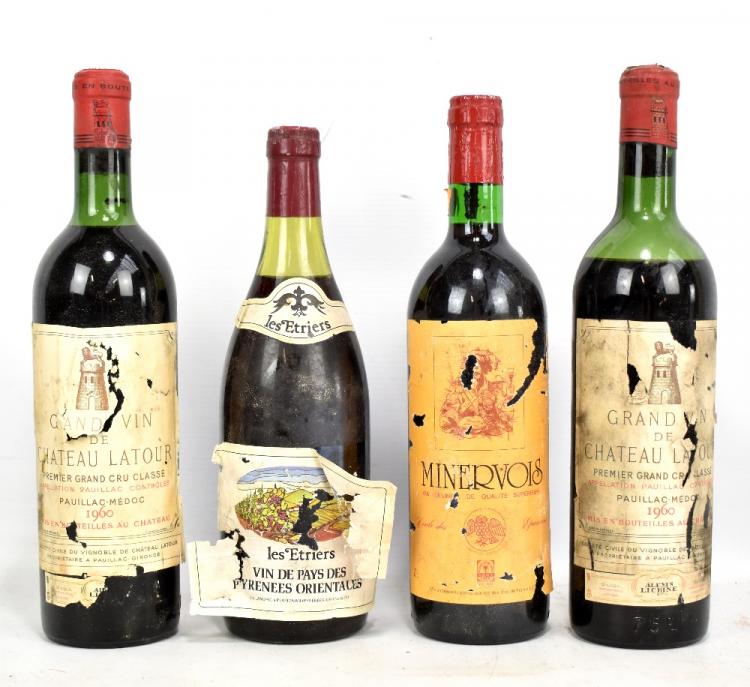 Lot 332 of 1656: GRAND VIN DE CHATEAU LATOUR; two bottles of Premiere Grand Cru Classé 1960 Pauillac-Médoc red wine (both labels af) and two further bottles of red wine (4).