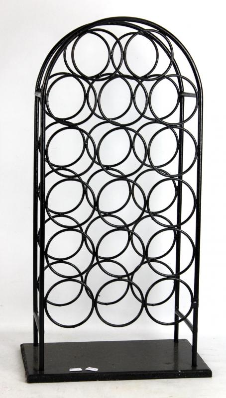 Lot 336 of 1656: A painted metal 17 bottle wine rack on wooden base, height 71cm.