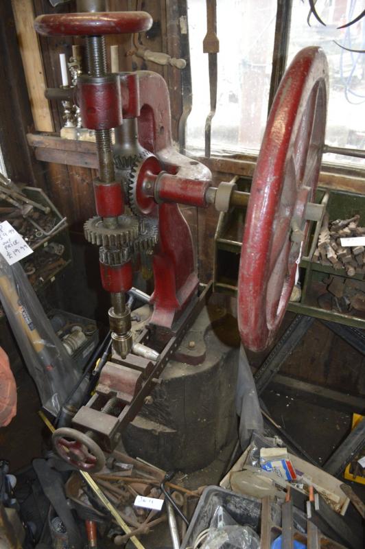 Lot 323 of 442: A drill, height approx. 38'', diameter of handle approx. 21 1/2''.