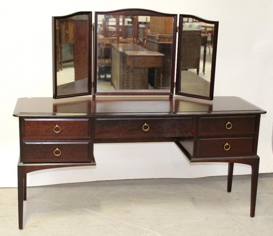 Lot 63 of 959: An early/mid-20th century Waring & Gillow oak wardrobe in the Colonial style, double panelled doors with carved panels and linen-fold carving, on a plinth base and block supports, interior mirrored door and one hanging rail, 180 x 118cm.