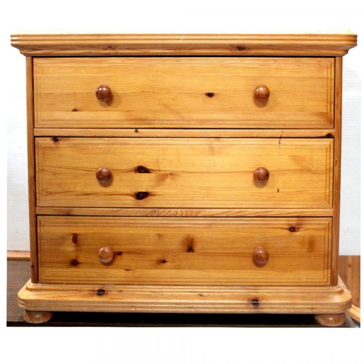 Lot 70B of 959: A modern pine chest of three drawers, raised on bun feet, height 73cm.