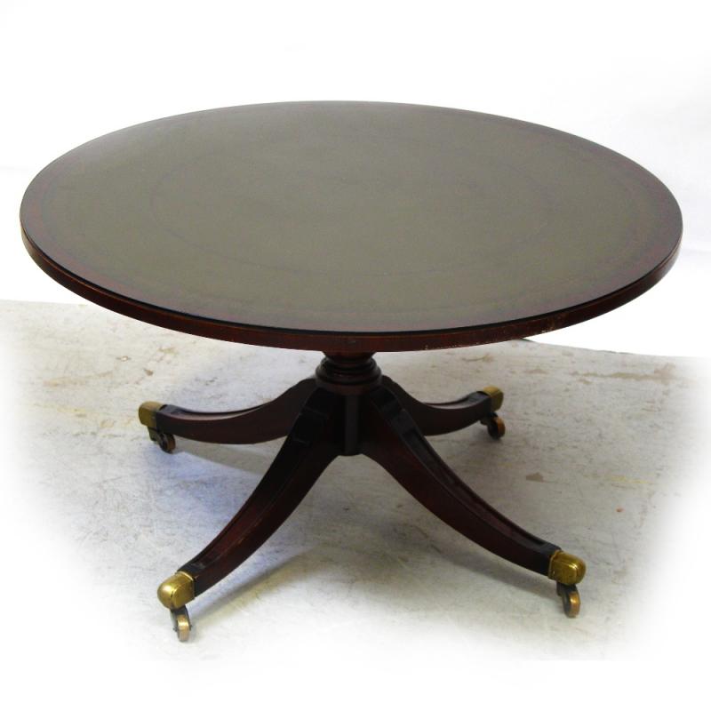 Lot 78 of 959: A 20th century mahogany reproduction tilt-top table on quadripartite pedestal base to brass slipper castors, height 50cm.