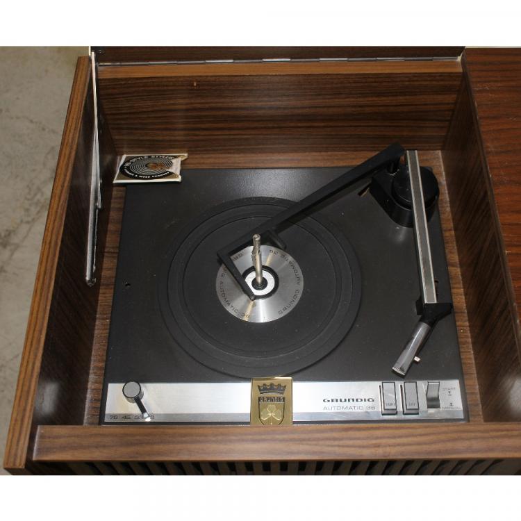 Lot 84 of 959: A c1960s walnut veneered Grundig radiogram with tuner and record player, width 145cm.