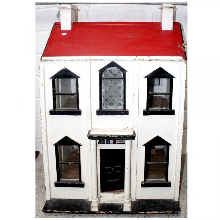 Lot 676 of 959: A scratch-built dolls' house with red roof and columned portico, height 105cm.