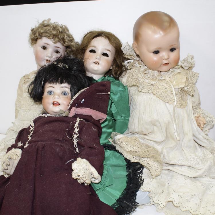 Lot 683 of 959: Four German bisque and composite dolls, makers include Armand Marseille, Heubach Koppelsdorf etc, height of largest approx 65cm (4).