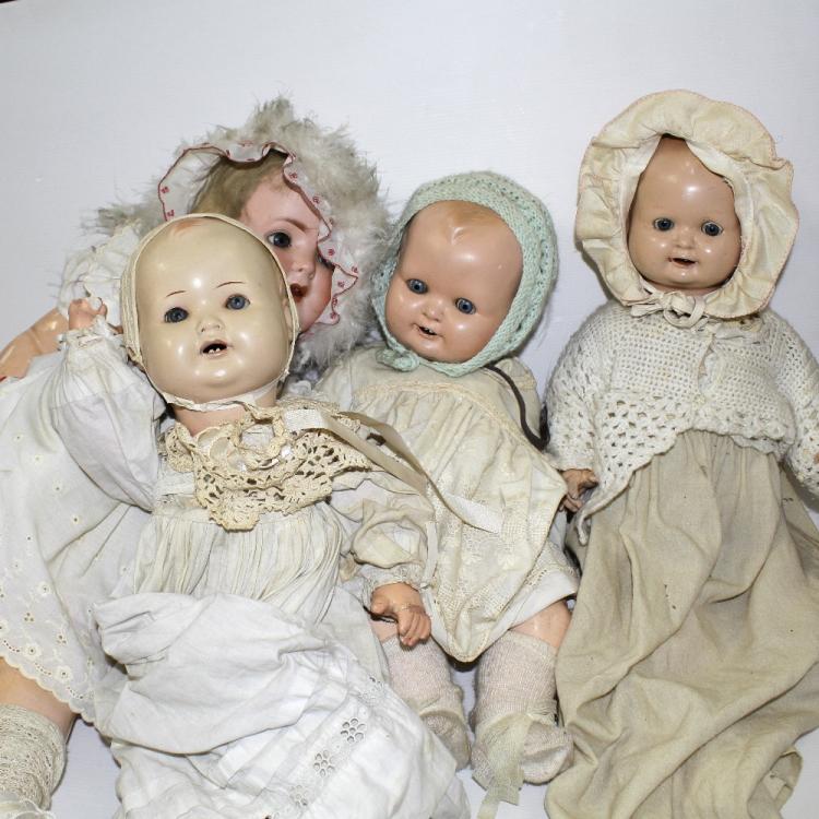 Lot 688 of 959: Four German composite and bisque head dolls, makers include Heindich Handwerk, Porzellanfabrik Burggrug etc, height of the largest 56cm (4).