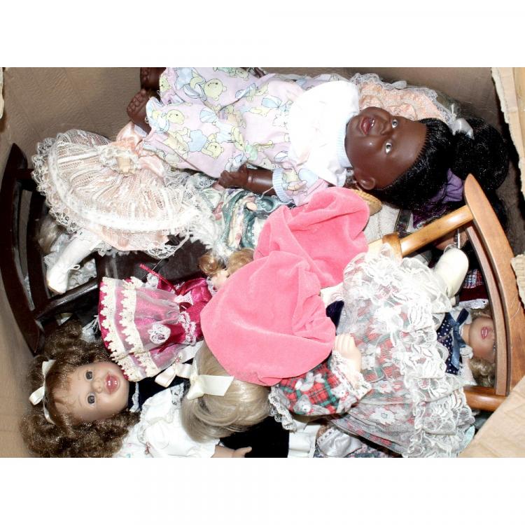 Lot 698 of 959: Thirty-three modern porcelain dolls including one riding a rocking horse, height 36cm (33).