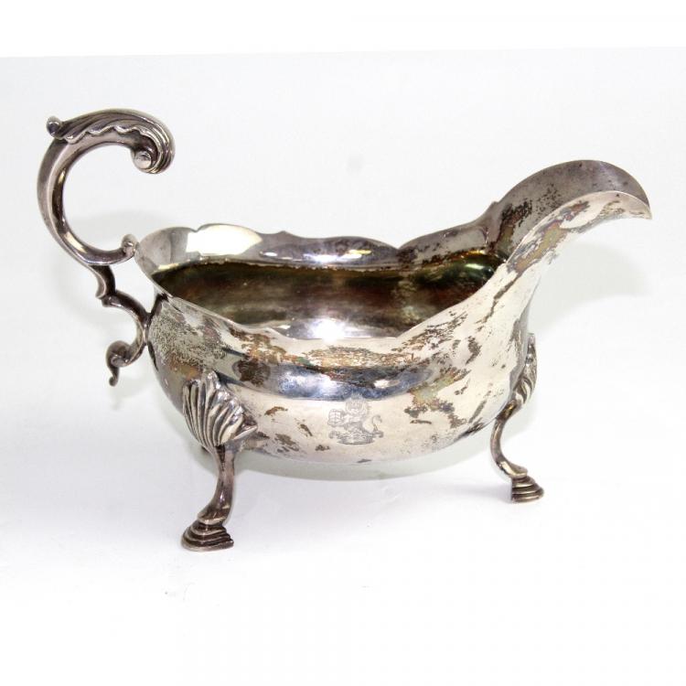 Lot 783 of 959: A Victorian hallmarked silver sauce boat, Richard Sibley II, London 1854, approx height 11.5cm, approx 8ozt.