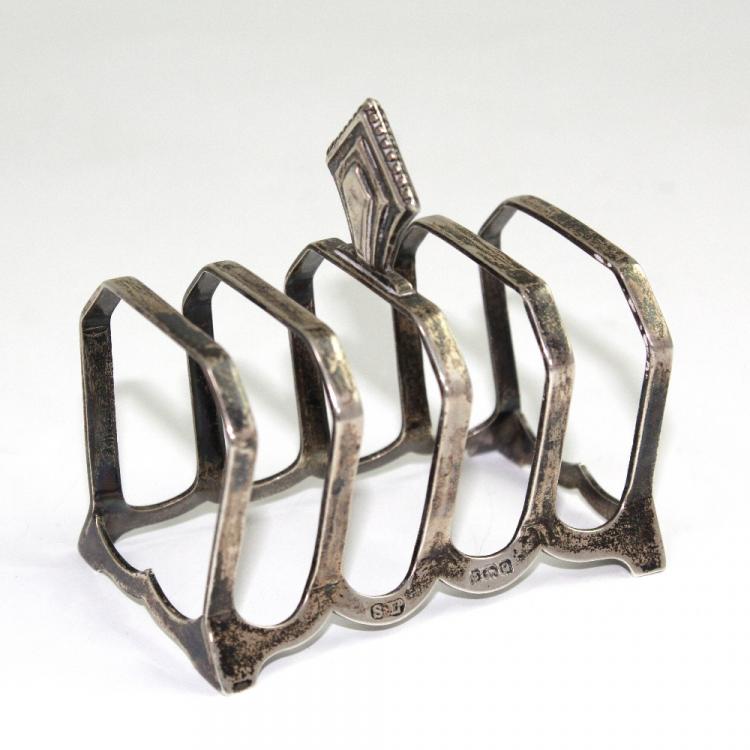 Lot 784 of 959: A hallmarked silver bachelors' toast rack, William Suckling Ltd, Birmingham 1940, length 7cm, approx 1.5ozt.