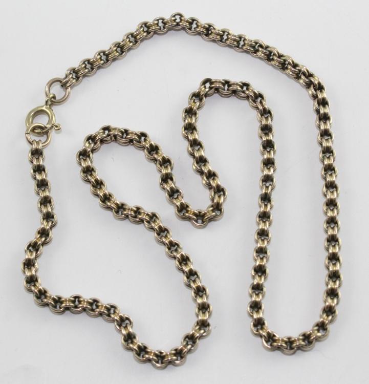 Lot 888 of 959: A 9ct gold link chain necklace, approx 9g.