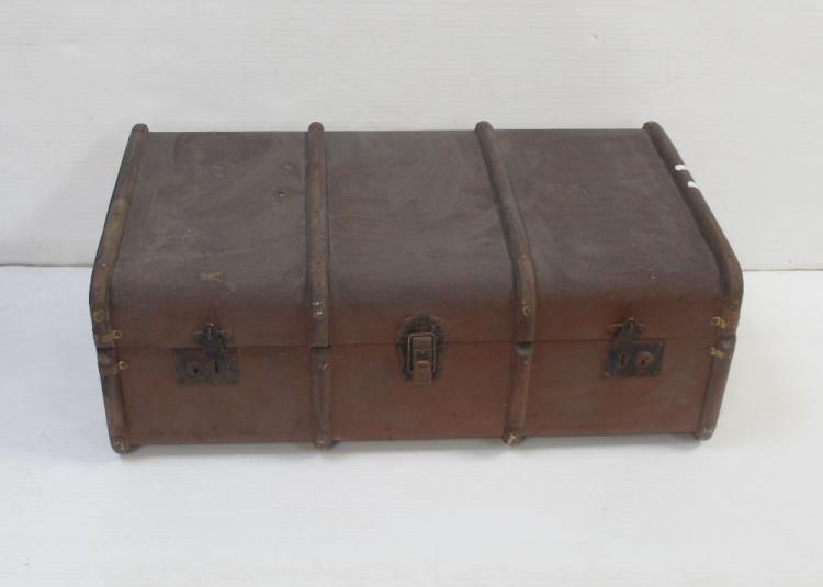Lot 218 of 1098: A late 19th/early 20th century travel trunk with bamboo laths and small label.