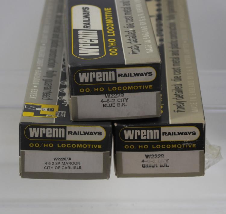 Lot 786 of 1098: Three Wrenn Railways OO/HO locomotives to include W2229 4-6-2 City Blue B.R., W2226/A 4-6-2 8P maroon City of Carlisle and a W2228 4-6-2 City Green B.R., all in original boxes (3).
