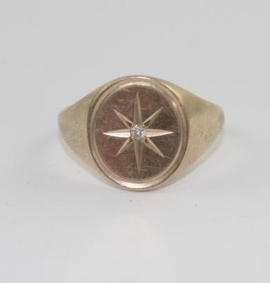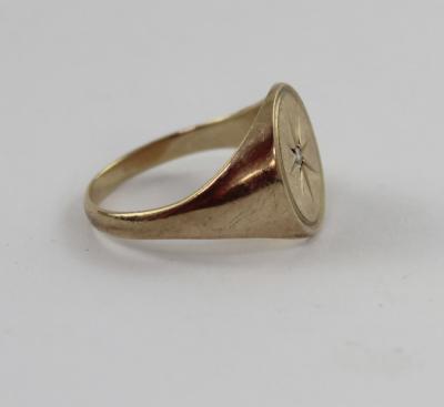 Lot 986 of 1098: A 9ct gold gentlemen's chip diamond signet ring, size X, approx 6.5g.