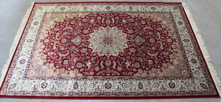 Lot 144 of 922: A modern red ground Keshan carpet, 230 x 160cm.