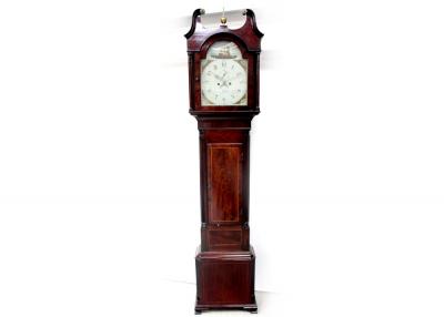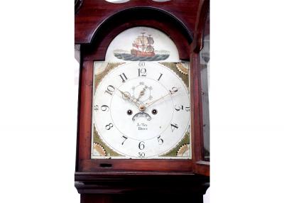 Lot 159 of 922: A late 18th century mahogany longcase clock by John Tate of Down, broken swan neck pediment over painting of ship in full sail, white dial with Arabic numerals and subsidiary seconds dial and date aperture, height approx 230cm.