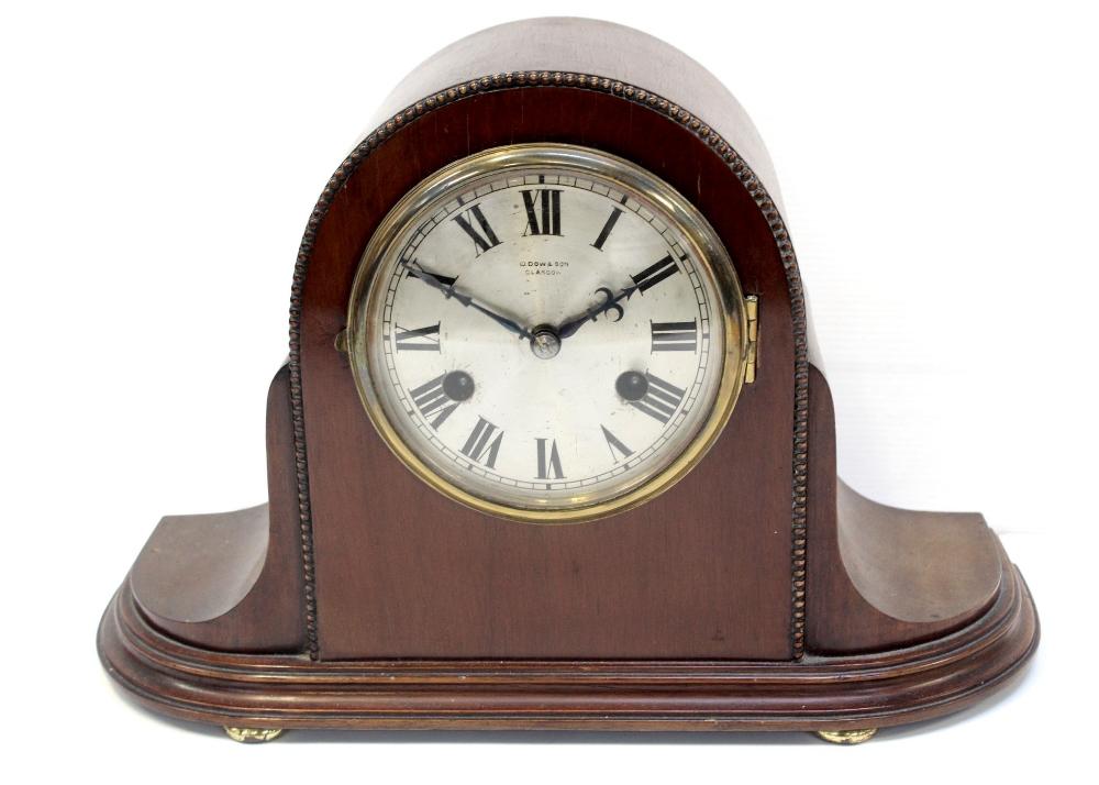 Lot 167 of 922: An early/mid-20th century mahogany-cased eight day clock by D Down & Son, Glasgow, the silvered dial set with Roman numerals, height 24cm.
