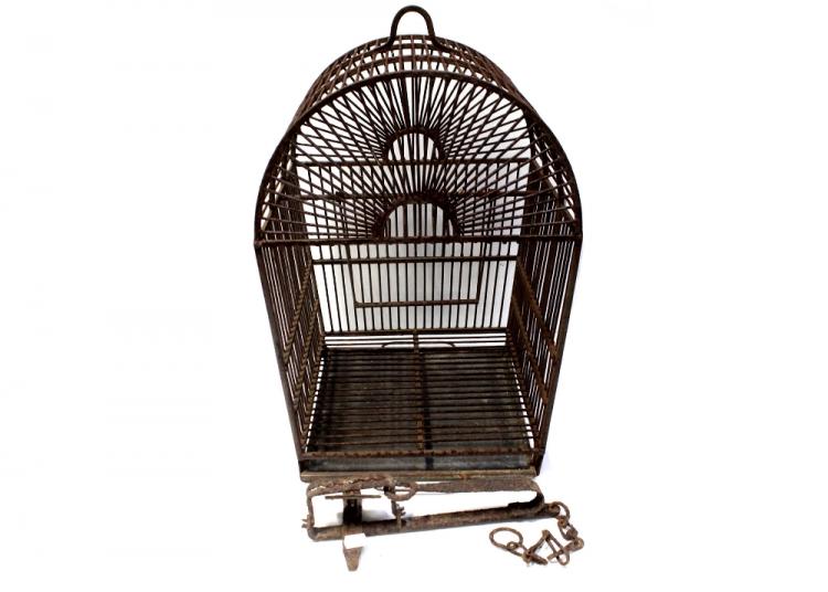 Lot 230 of 922: A vintage metal dome topped bird cage, height approx 60cm and a Victorian trap (2).