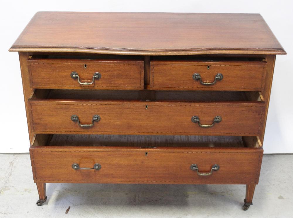 Lot 68 of 1176: An Edwardian mahogany inlaid two-over-two chest of drawers to tapering supports and castors, 80 x 107cm.