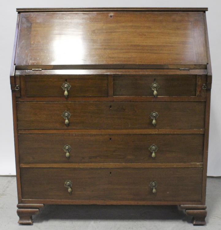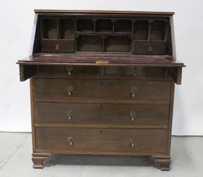 Lot 89 of 1176: A 19th century mahogany bureau, drop-down desk top with interior pigeonholes and drawers over two drawers over three long drawers to bracket support, length 93cm.