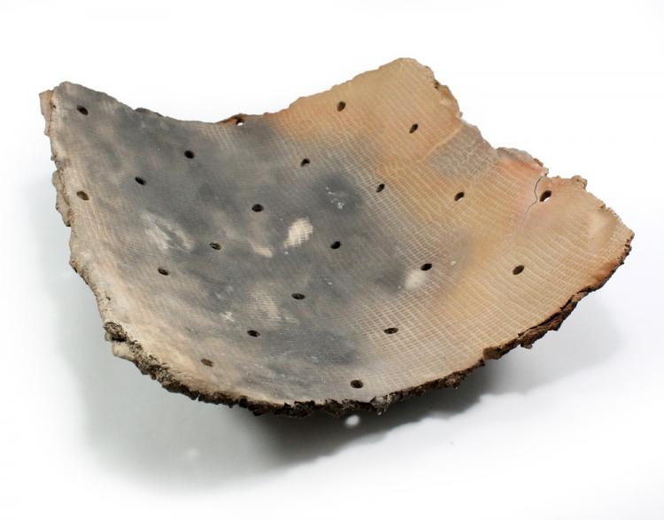 Lot 274 of 476: SEBASTIAN BLACKIE (born 1949); a large square shallow stoneware dish, sawdust fired, ribbed and perforated with impressed mesh-like decoration, 51 x 49cm (D).