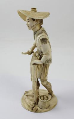 Lot 432 of 788: A Japanese Meiji period Tokyo school okimono of a wood cutter on a stylised circular base, signature and red seal mark to base, height 21cm (af).