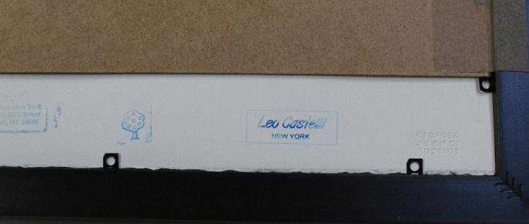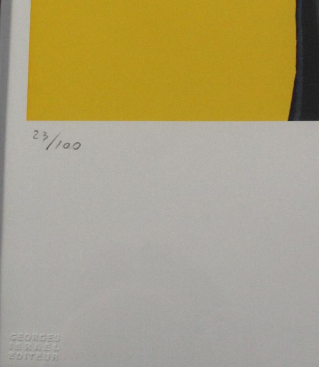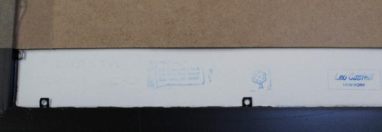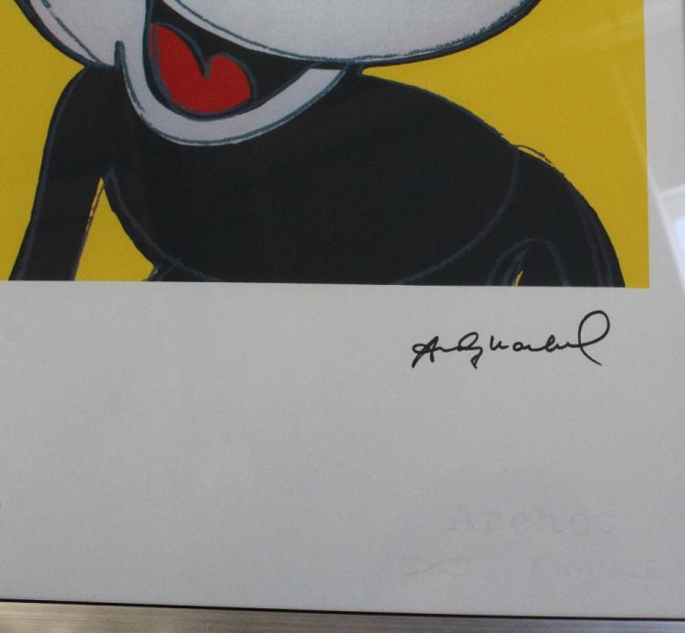 Lot 460 of 788: After Andy Warhol; a limited edition screenprint numbered 23/100 of Mickey Mouse edged in pink to a yellow ground, signed within the print and with 'Art Gallery New York' and 'Leo Castelli' stamps verso, with blind stamp 'George Israel Editeur', 56 x 38cm, framed and glazed.