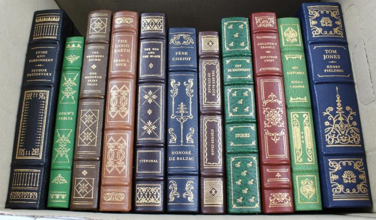 Lot 562 of 788: A collection of Franklin Library leather-bound editions to include Aesop's Fables, Dostoevsky's 'Crime and Punishment', Jonathan Swift's 'Gulliver's Travels', 'One Hundred Fairy Tales' by the Brothers Grimm, 'The Red Badge of Courage' by Stephen Crane, 'Tom Jones' by Henry Fielding etc.