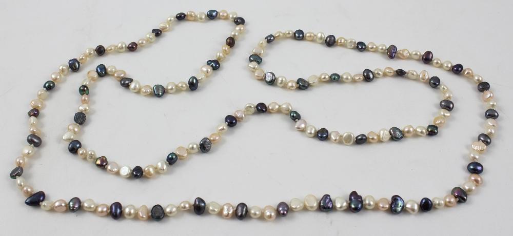 Lot 746 of 788: A string of coloured baroque pearls, length 144cm.