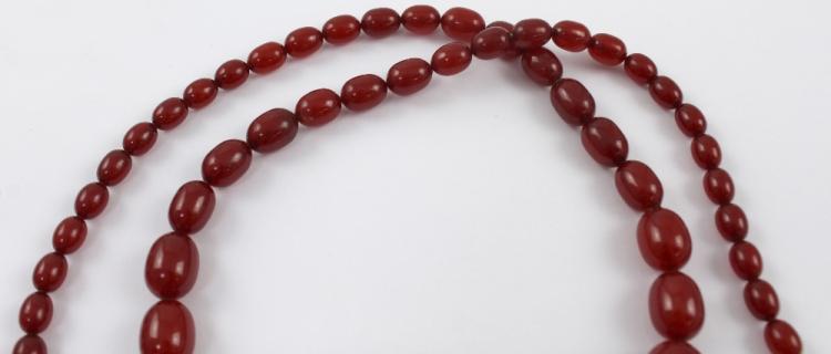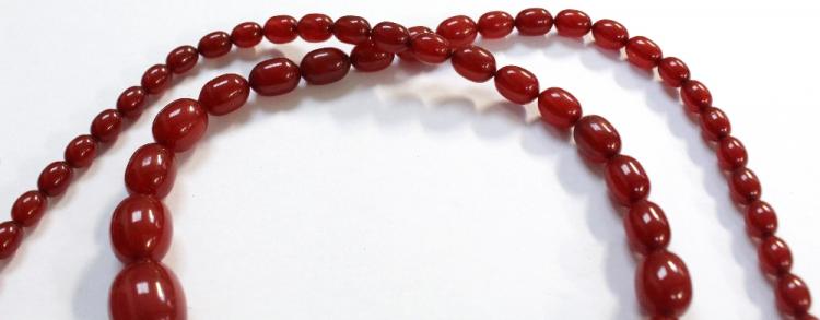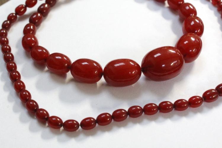 Lot 747 of 788: A string of cherry amber style beads, length 86cm, approx 65g.
