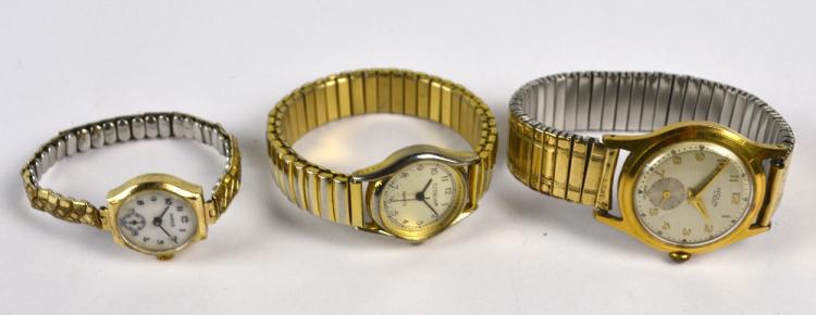 Lot 1852 of 2482: HERCO; a 9ct yellow gold lady's cocktail watch, dial 20cm, the circular dial set with Arabic numerals and subsidiary seconds dial, on expanding rolled gold bracelet, a gold plated gentleman's wristwatch and a further stainless steel example (3).