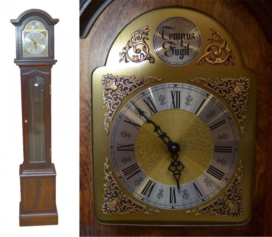 Lot 1883 of 2482: A reproduction mahogany longcase clock with glazed door and twin brass weights.