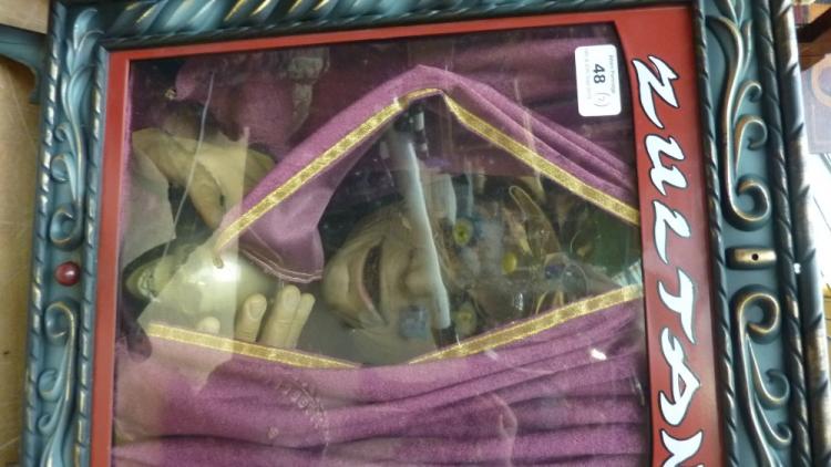 Lot 48 of 2137: A group of props collected by the Great Stromboli comprising 'Zoltan' fortune teller, sets of handcuffs, model coffin etc.  Provenance: The Great Stromboli.